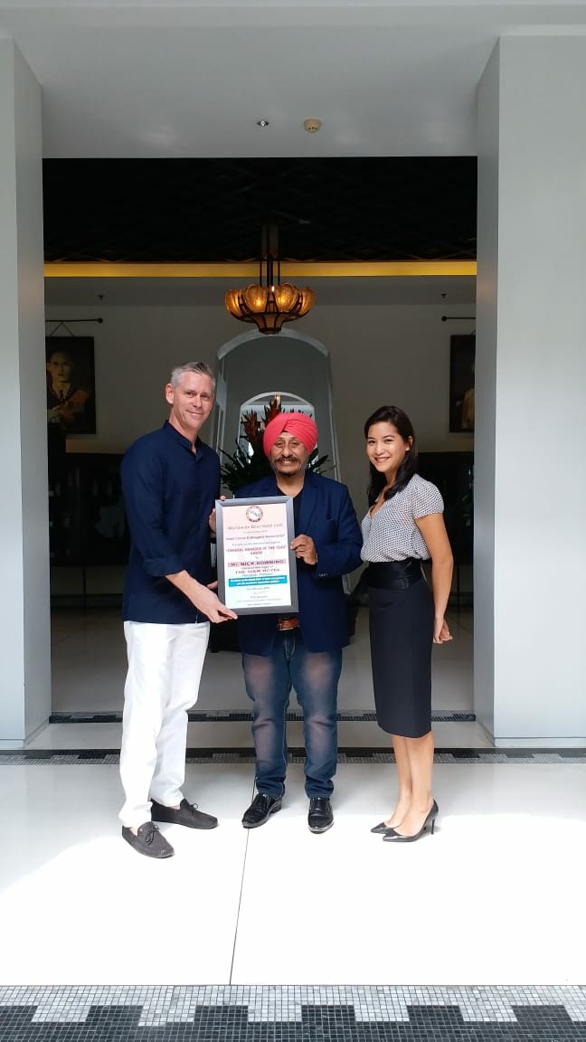 “Best General Manager of the Year 2018 Award” to Mr. Nick Downing of THE HOTEL SIAM, Bangkok. The award is for his great team leadership, finest hospitality managerial skills, interaction with guests and above all for his down to earth & pleasing personality.