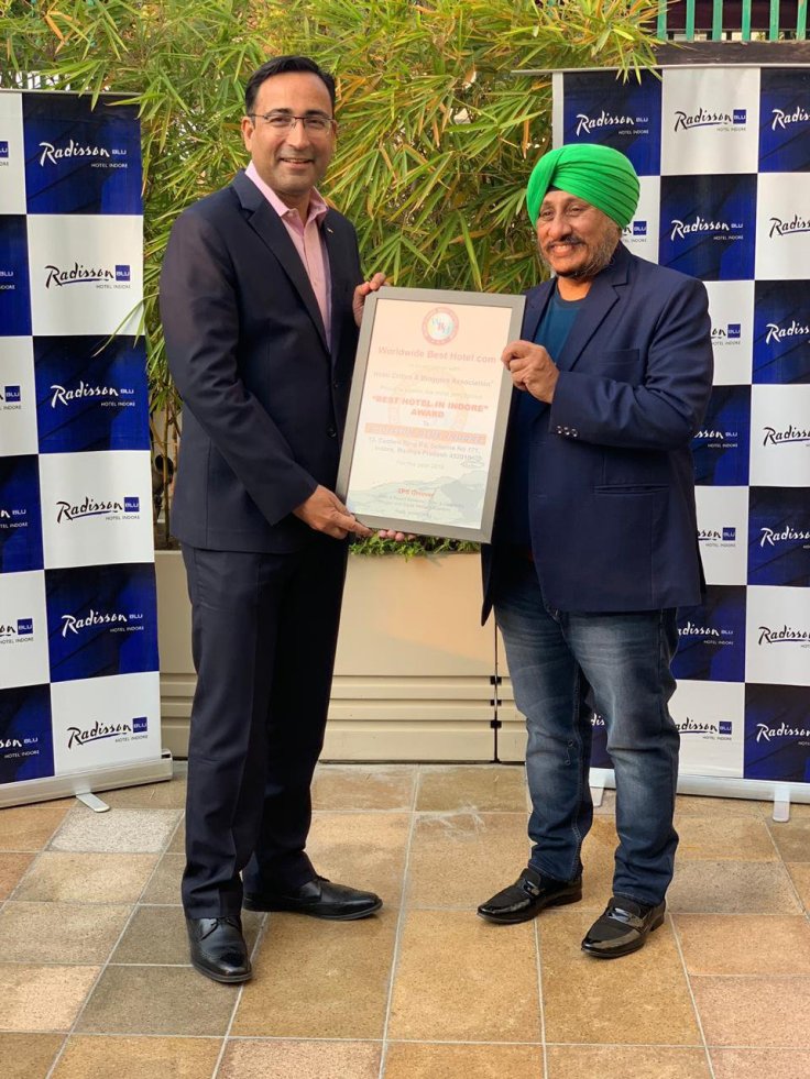 It is a matter of great pride in honoring the entire team of Radisson Blu Indore, with this coveted award. This award is for providing excellent world class services to the guests.