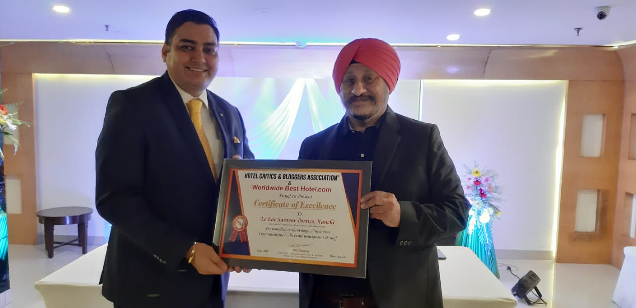 “CERTIFICATE OF EXCELLENCE” to LE LAC SAROVAR PORTICO RANCHI.