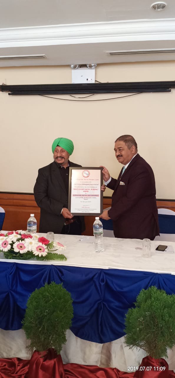 Proud to present” Best Luxury Hotel in Nepal” award to Radisson Hotel Kathmandu, Nepal.