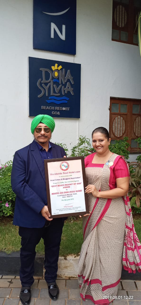 Recently our chief hospitality blogger/ critic & reviewer and social media influencer, Mr. Tps Grrover visited Goa to present “Best Beach Resort of GOA Award” to NOVOTEL Goa Dona Sylvia Resort.