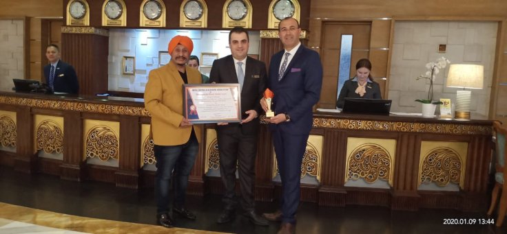 Team HCBA led by Mr. Tps Grrover proud to present “International Excellence in Hospitality Award” to Grand Excelsior Hotel Bur Dubai, Dubai-UAE.