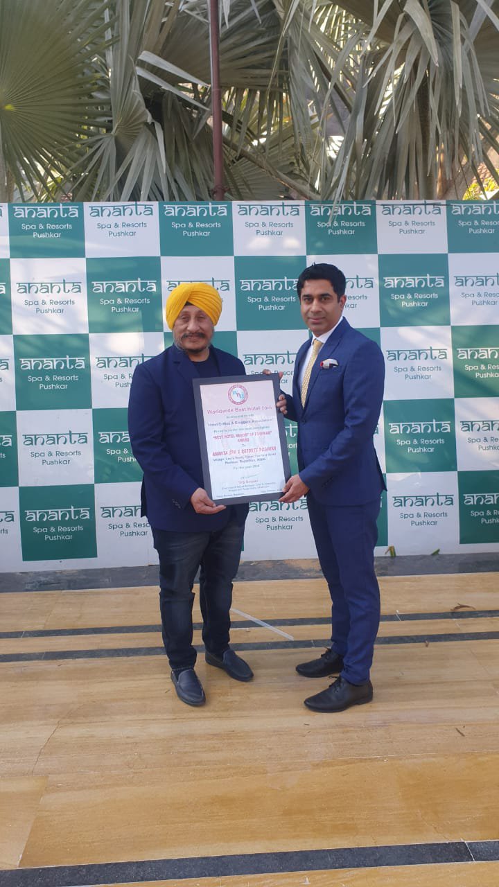 “Best Resort Hotel of Pushkar Award” to Ananta Spa & Resort Pushkar.