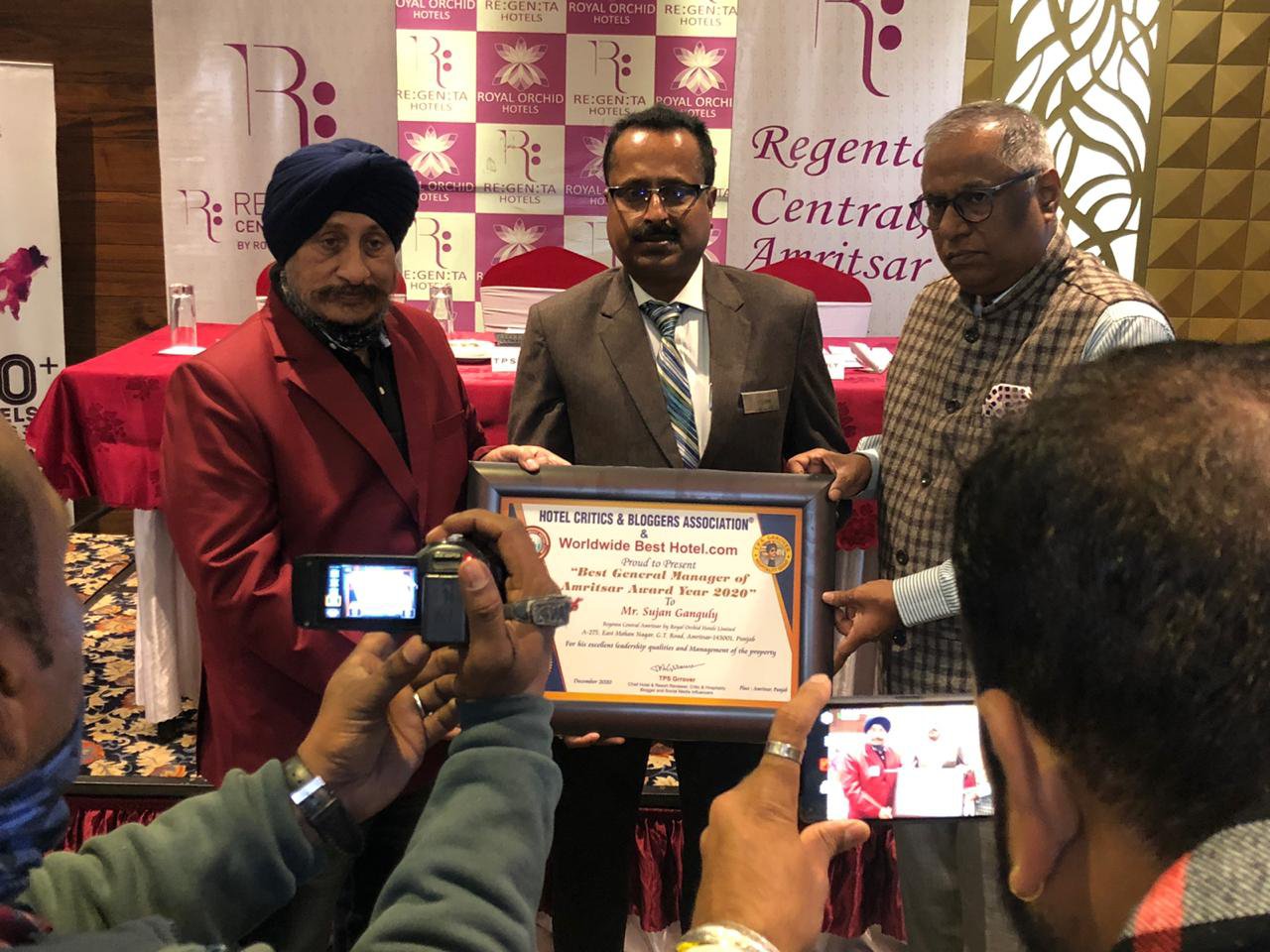 Team HCBA led by Mr. TPS Grrover, the chief hospitality blogger, presented Mr. Sujan Ganguly, the general manager of Hotel Regenta Central Amsitsar , with most prestigious “Best General Manager of Amritsar Award 2020”. The award was well attended by who’s who of Punjab and covered by print & electronic media.