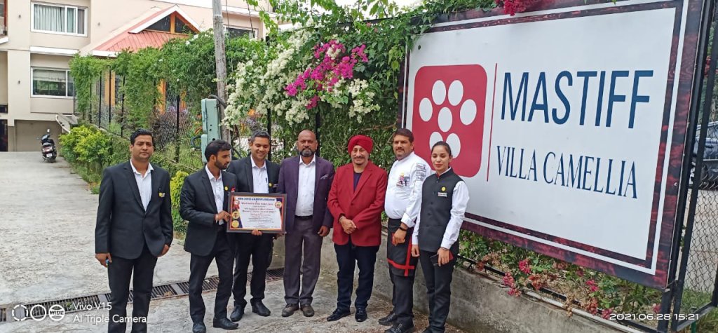 Team HCBA led by its Founder-Mr. Tps Grrover awarded “Palampur Best Hotel/ Resort/ Villa Award” to Mastiff Villa Camellia. The Mastiff Villa Camellia itself is the landmark of the area in fact the local people and guests from neighbouring states throng this property for most comfortable stay; excellent hospitality; superb cleanliness; ambience; most delicious food and above all due its location amidst lush tea gardens.