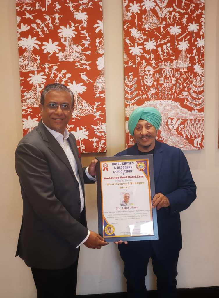 “Best General Manager Award “to Mr. Ashish Shome , GM of Hyatt Place Gurgaon Udyog Vihar, &