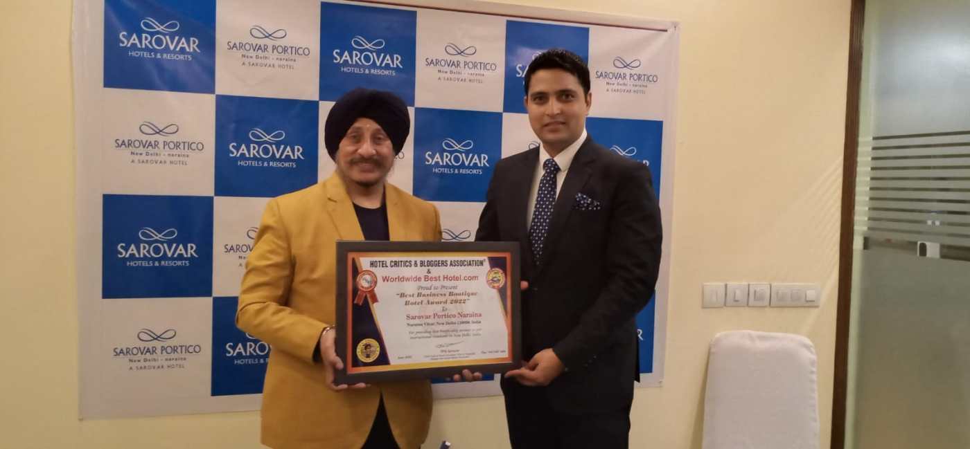 Team HCBA is proud to select Sarovar Portico Naraina after reviewing all points on our check list hence decided to present the management with ” Best Business boutique Hotel Award ”. Sarovar Portico Naraina, New Delhi, is a contemporary business hotel situated on the Ring Road adjoining Naraina Signal.