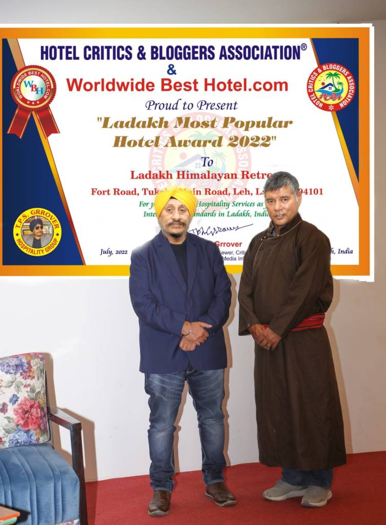 We are proud to present “ Ladakh Himalayan Retreat-Leh ” at recipient of as the “Most Popular hotel Award 2022”. Congratulations to Mr. Sonam & Its GM Mr. Arun Rajput.