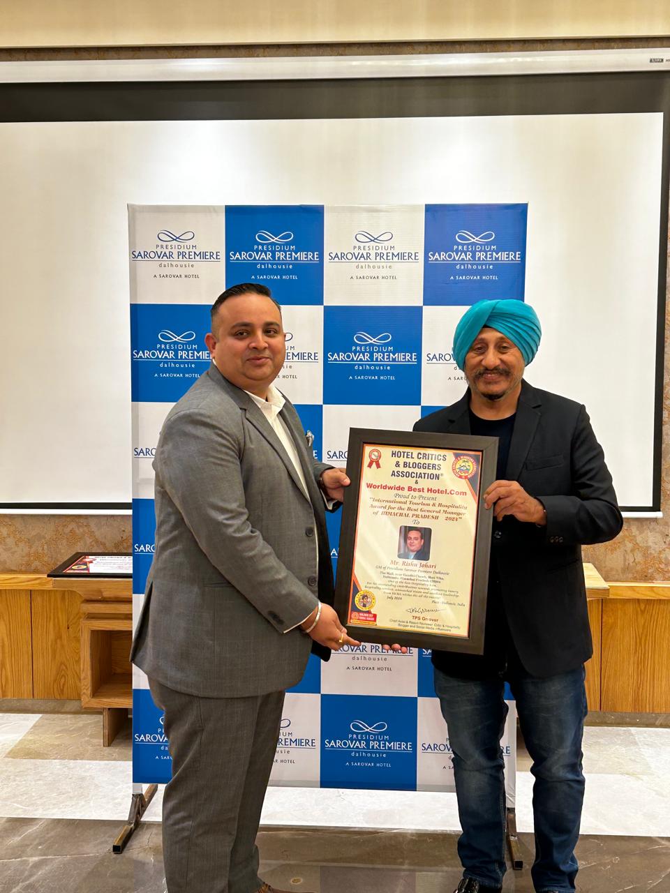 “International Tourism & Hospitality Award for the Best General Manager of HIMACHAL PRADESH 2024” to Mr. Rishu Johari , GM of Presidium Sarovar Premiere Dalhousie.