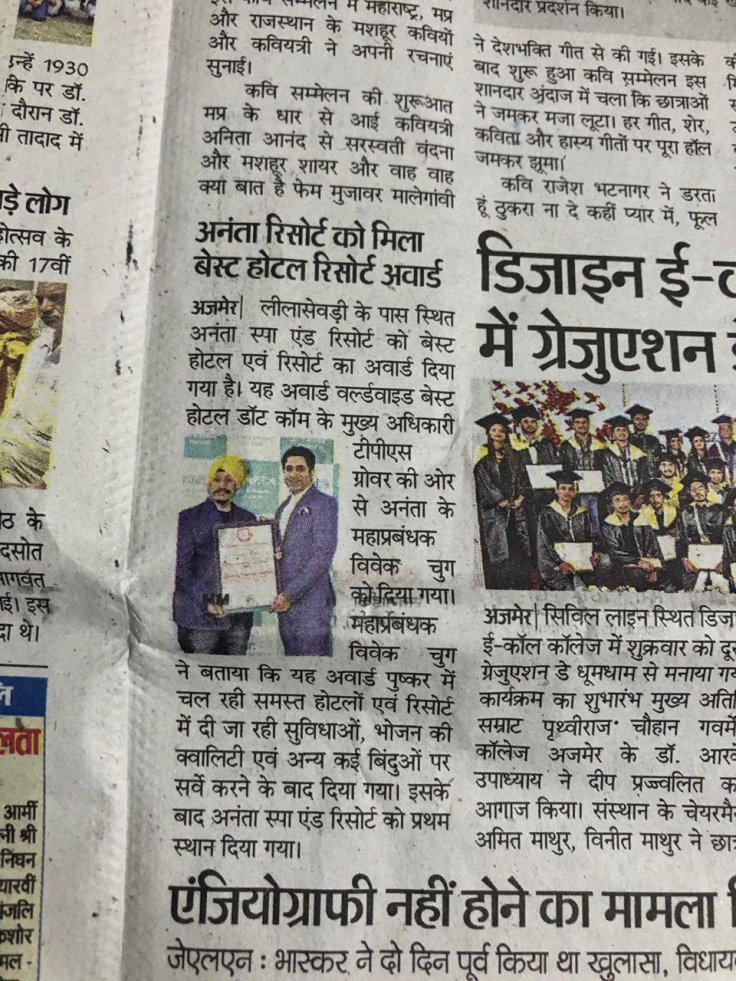Best Resort Hotel of Pushkar Award – Ananta Spa & Resort Pushkar